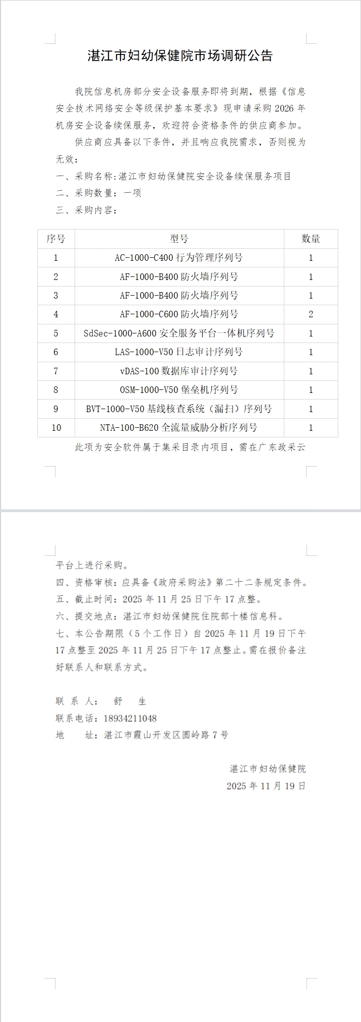 湛江市妇幼保健院市场调研公告