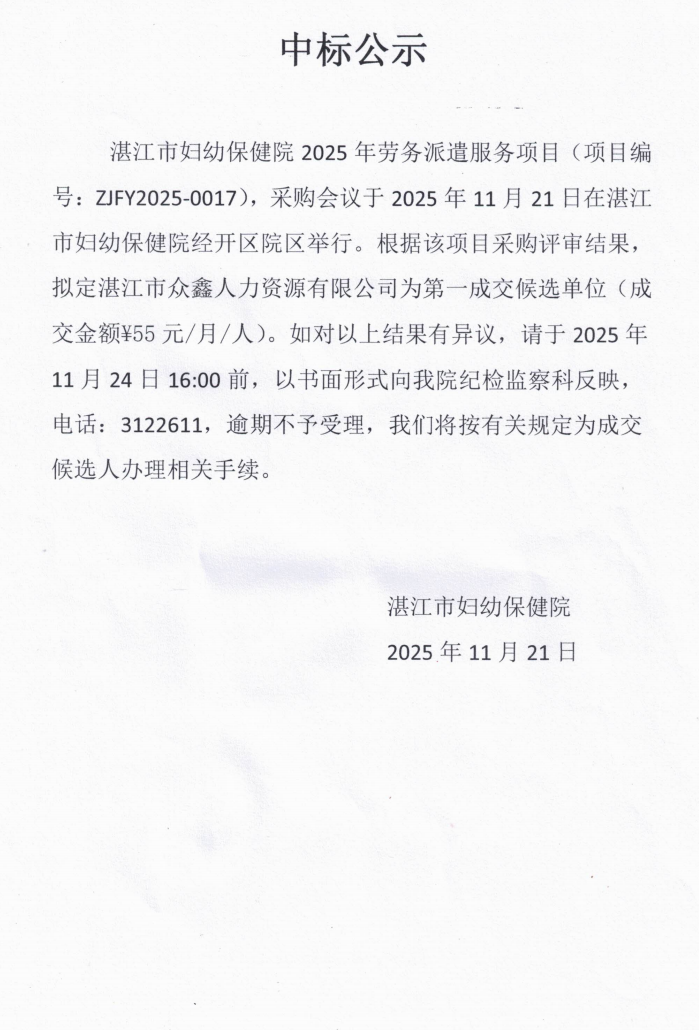湛江市妇幼保健院经开区院区生活垃圾清运服务项目采购信息