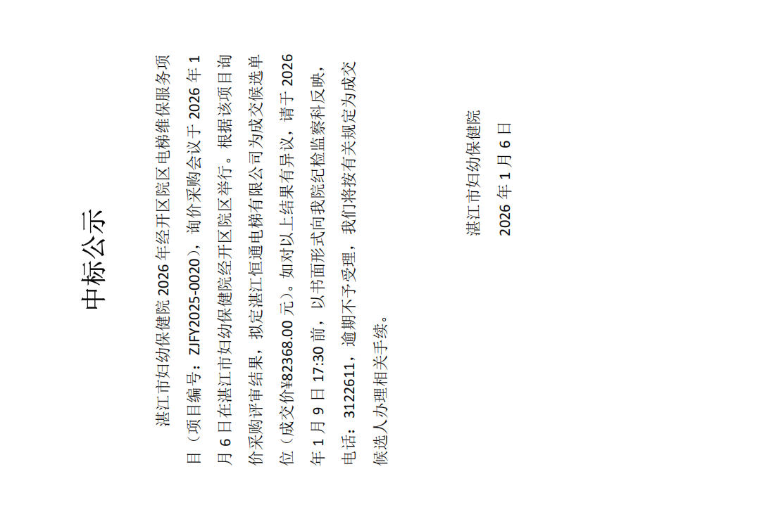 湛江市妇幼保健院中标结果公告