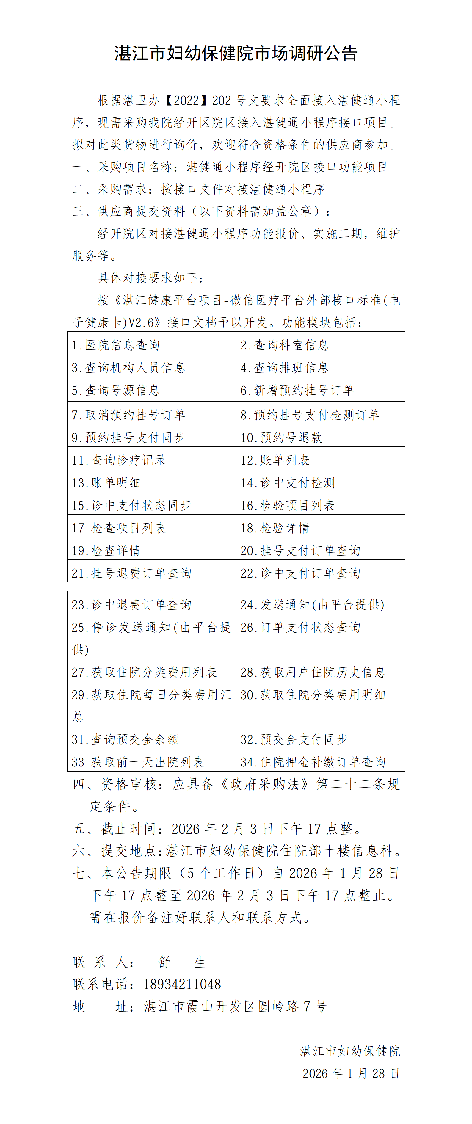 湛江市妇幼保健院市场调研公告